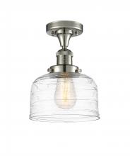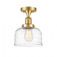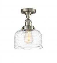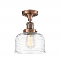 Bell - 1 Light - 8 inch - Matte Black - Clear Deco Swirl Shade - Semi-Flush Mount