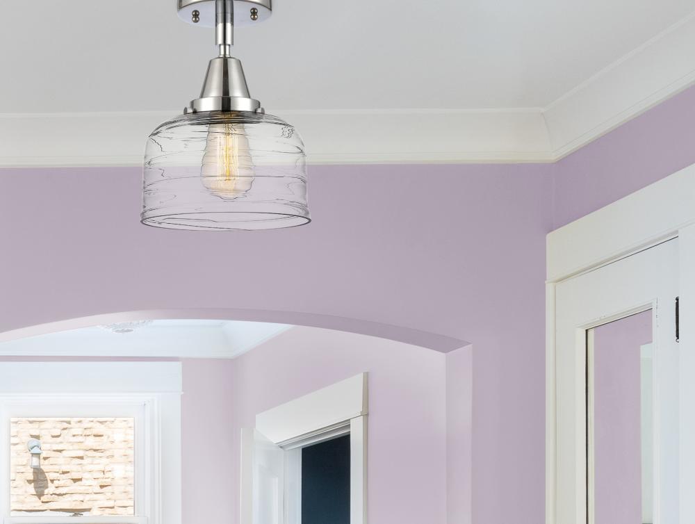 Bell - 1 Light - 8 inch - Polished Chrome - Clear Deco Swirl Shade - Semi-Flush Mount