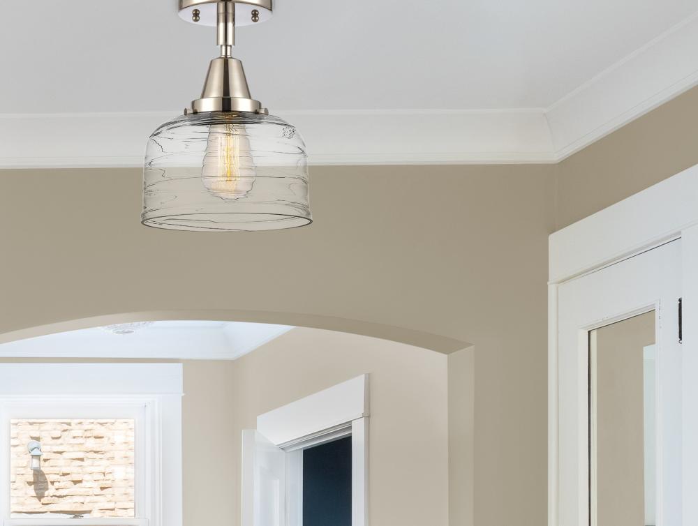 Bell - 1 Light - 8 inch - Polished Nickel - Clear Deco Swirl Shade - Semi-Flush Mount