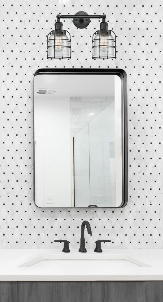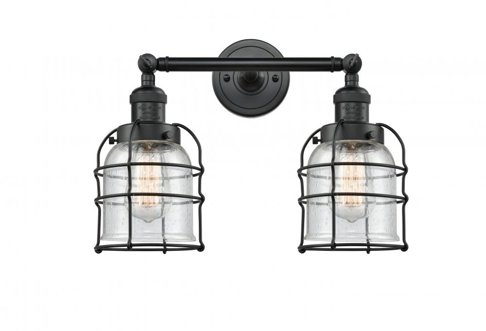 Bell Cage - 2 Light - 6 inch - Matte Black - Seedy Shade - Adjustable Bath Vanity Light