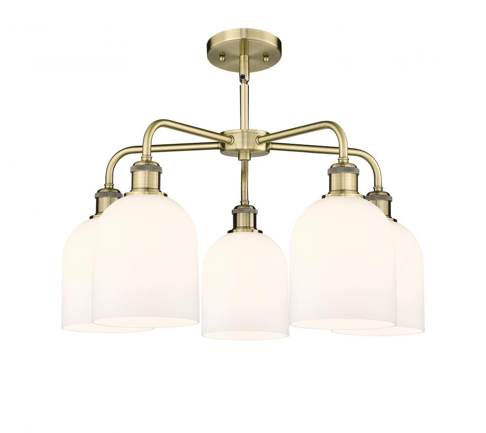 Bella - 5 Light - 24 inch - Antique Brass - White Shade - Chandelier