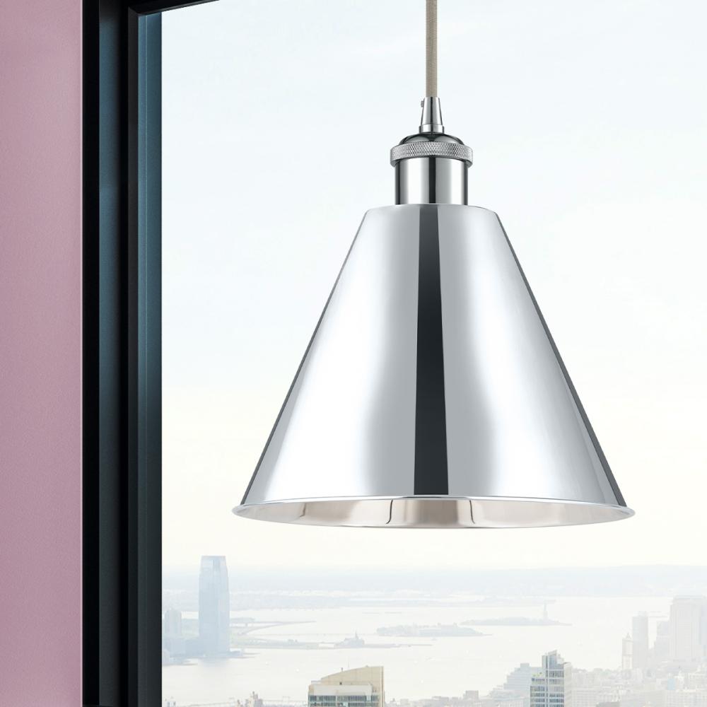 Berkshire - 1 Light - 12 inch - Polished Chrome - Polished Chrome Shade - Cord hung - Mini Pendant