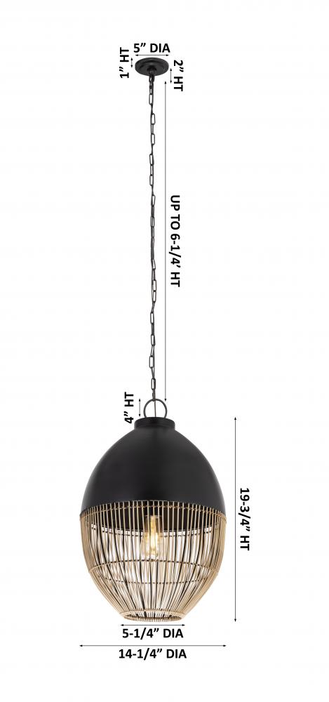 Crafted from natural rattan with a sleek black contrast, this egg-shaped pendant achieves a striking modern look. Its organic shape brings warmth and elegance to any space.