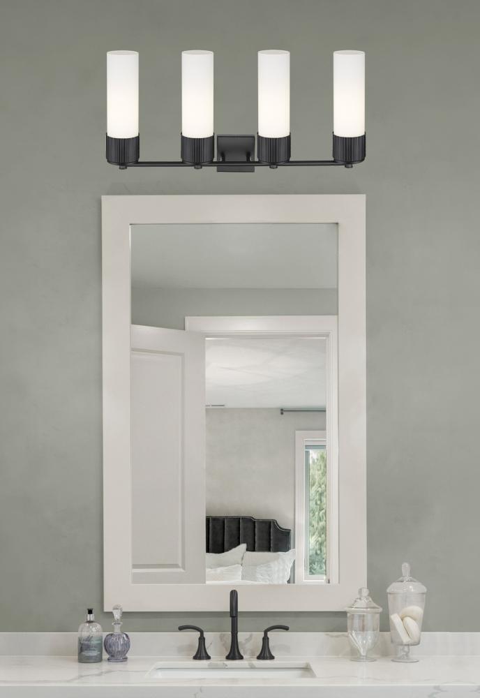 Bolivar - 4 Light - 31 inch - Matte Black - White Shade - Bath Vanity Light
