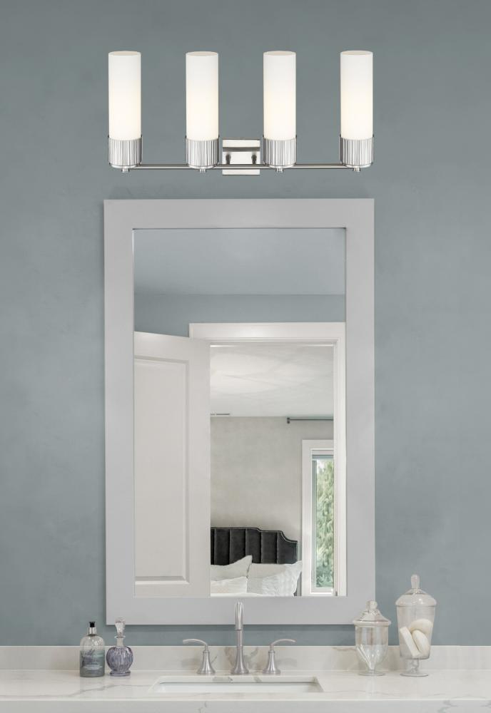 Bolivar - 4 Light - 31 inch - Satin Nickel - White Shade - Bath Vanity Light