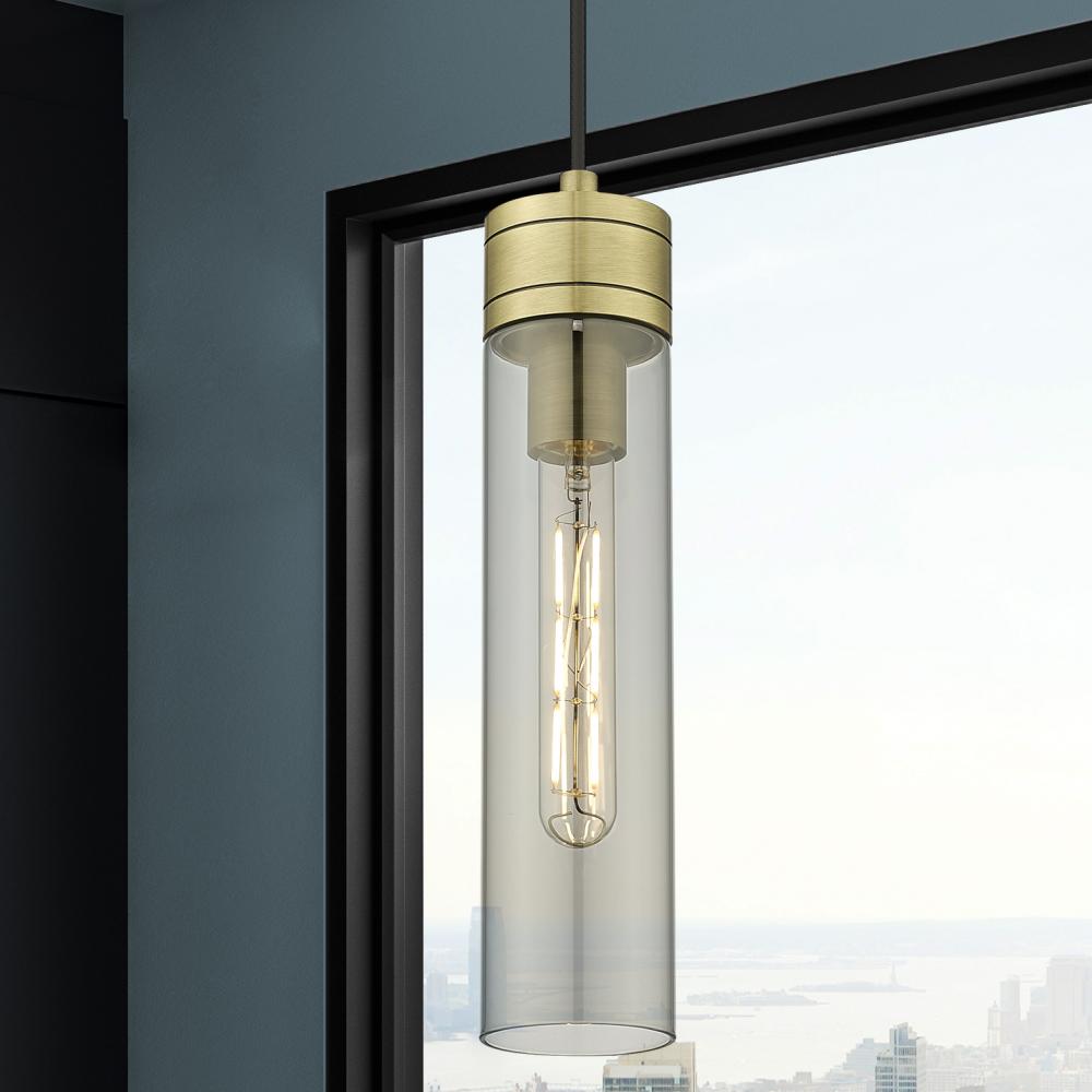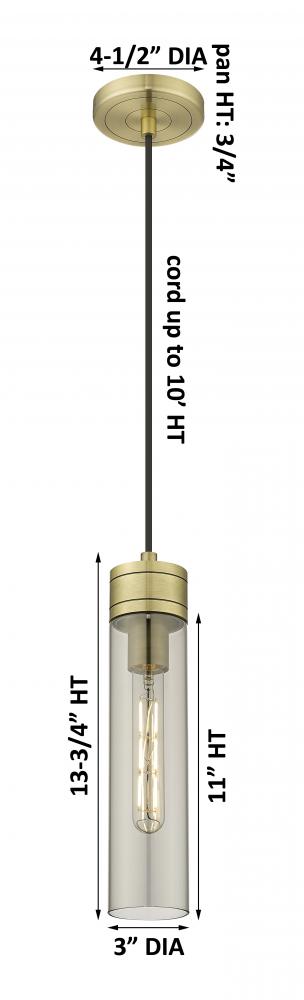 Boreas - 1 Light - 3 inch - Antique Brass - Light Smoke Shade - Cord Hung - Mini Pendant