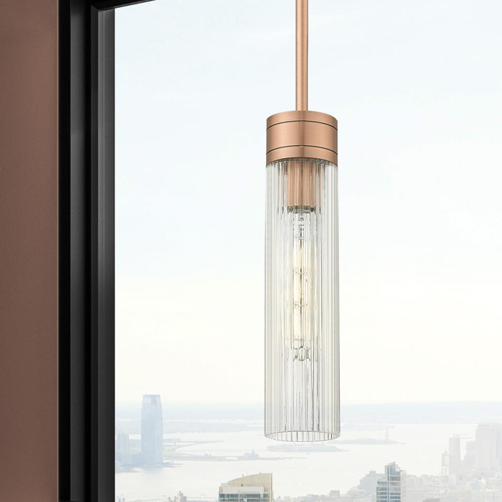 Boreas - 1 Light - 3 inch - Antique Copper - Striped Clear Shade - Stem Hung - Mini Pendant