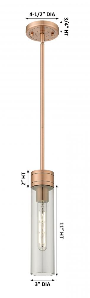 Boreas - 1 Light - 3 inch - Antique Copper - Light Smoke Shade - Stem Hung - Mini Pendant