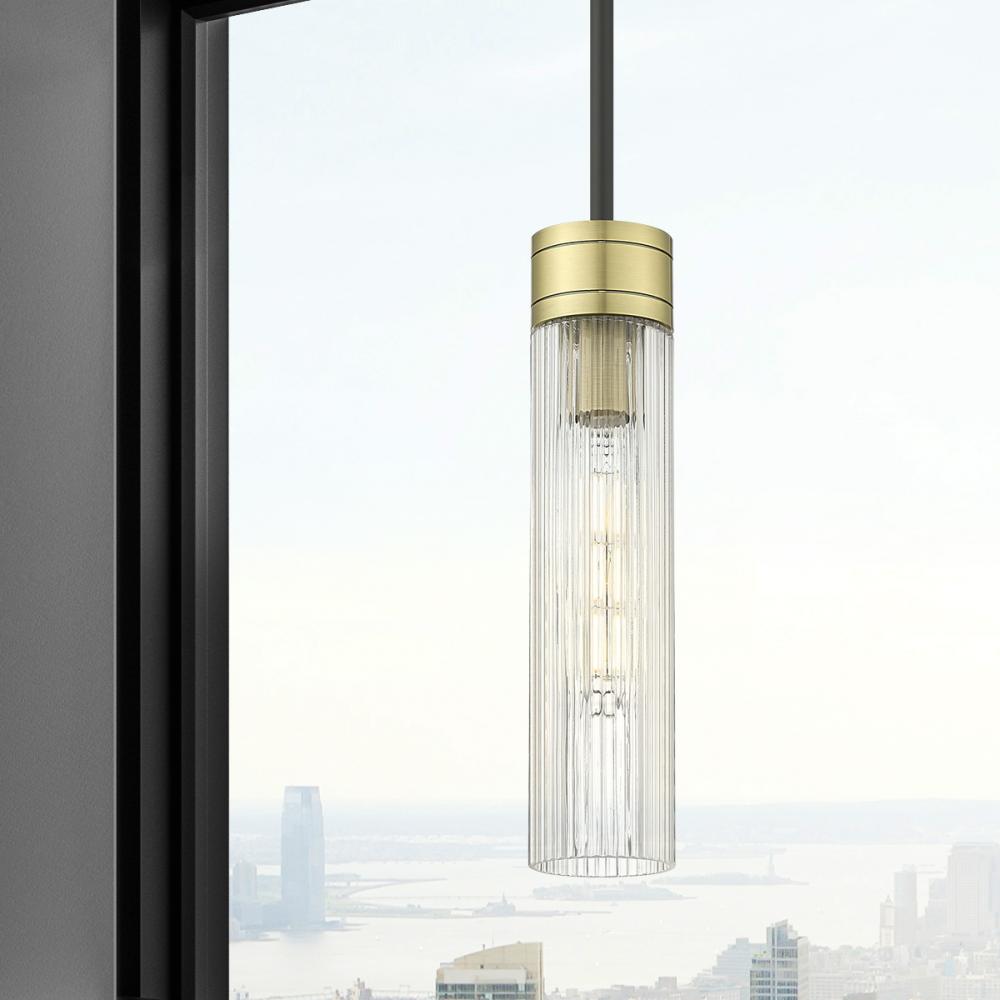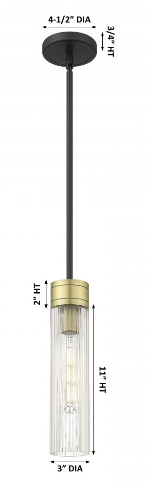 Boreas - 1 Light - 3 inch - Black Antique Brass - Striped Clear Shade - Stem Hung - Mini Pendant
