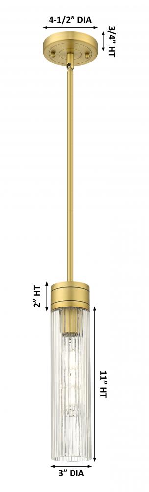 Boreas - 1 Light - 3 inch - Brushed Brass - Striped Clear Shade - Stem Hung - Mini Pendant