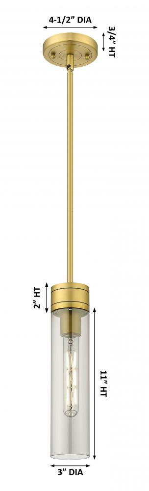 Boreas - 1 Light - 3 inch - Brushed Brass - Light Smoke Shade - Stem Hung - Mini Pendant