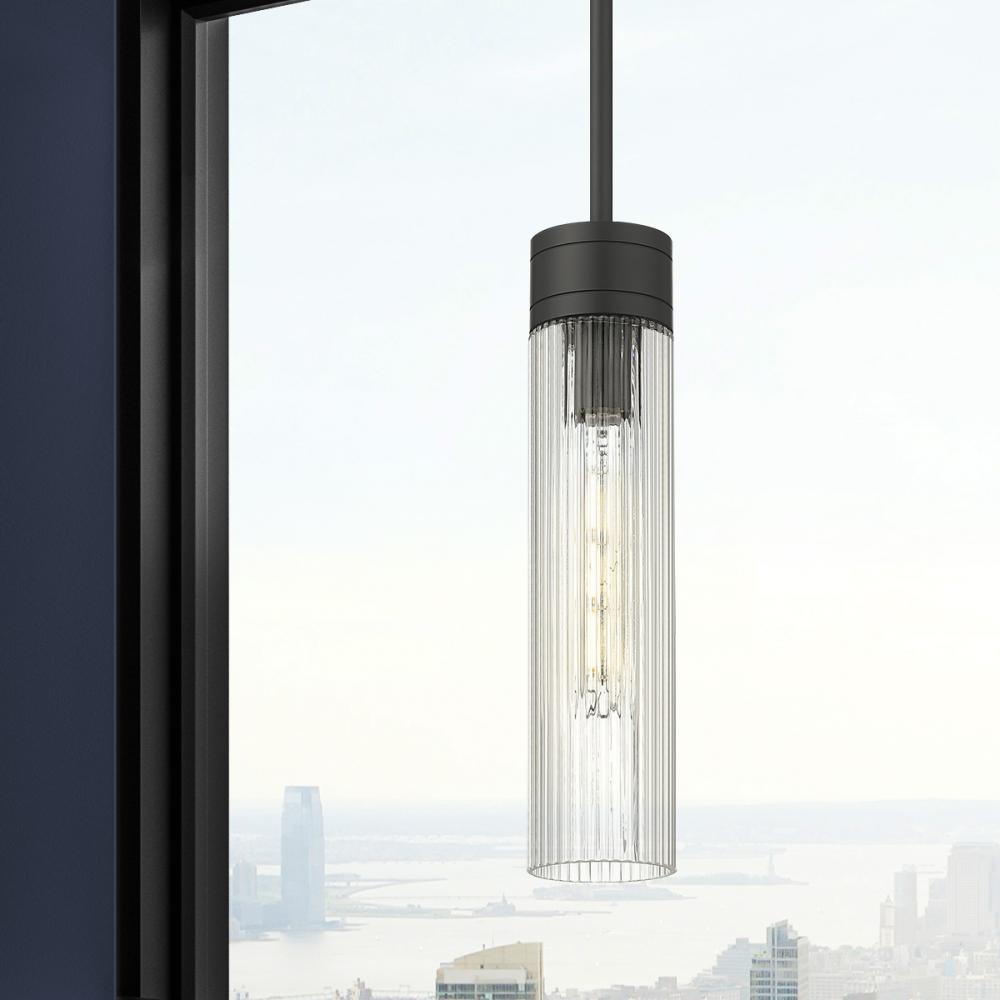 Boreas - 1 Light - 3 inch - Matte Black - Striped Clear Shade - Stem Hung - Mini Pendant