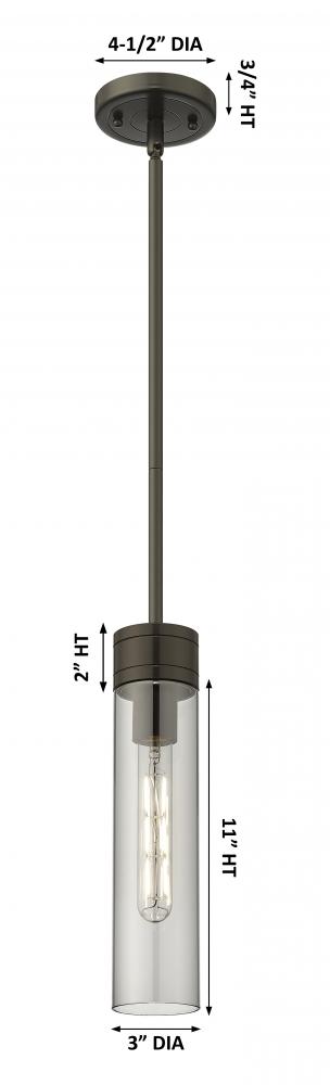 Boreas - 1 Light - 3 inch - Oil Rubbed Bronze - Light Smoke Shade - Stem Hung - Mini Pendant