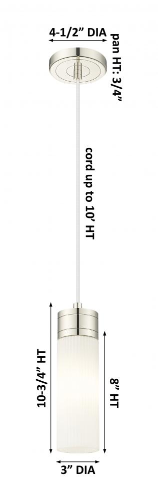 Boreas - 1 Light - 3 inch - Polished Nickel - Striped White Shade - Cord Hung - Mini Pendant