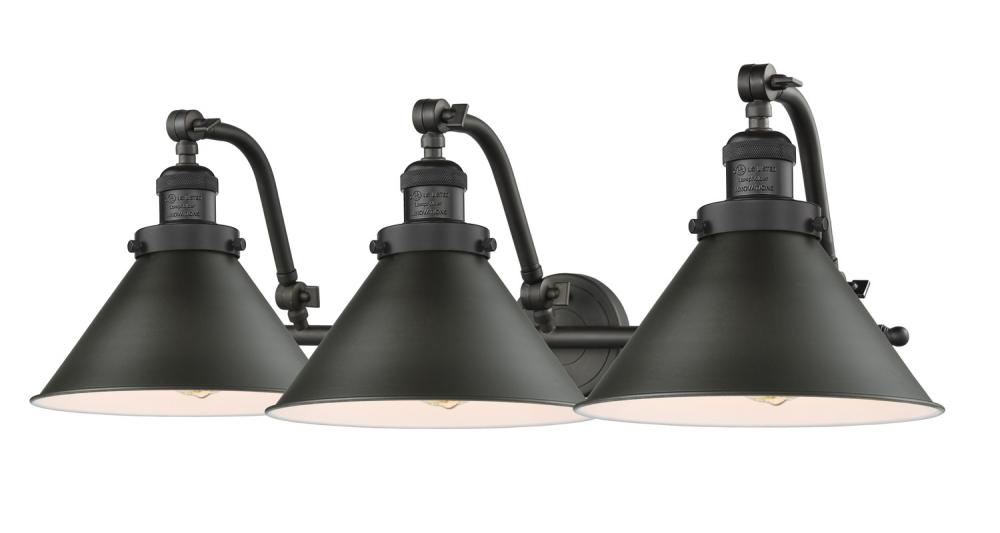 The Briarcliff 3 Light Bath Vanity Light is part of the Franklin Restoration Collection. Solid Brass 180 Degree Adjustable Swivels with internal teeth that lock in at 5 degree intervals