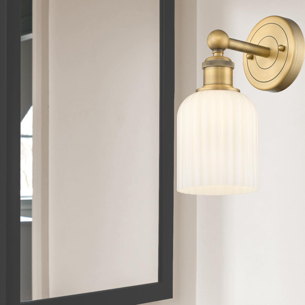 Bridal Veil - 1 Light - 5 inch - Brushed Brass - Gloss White Shade - Sconce