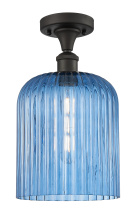 Bridal Veil - 1 Light - 5 inch - Matte Black - Princess Blue Bridal Veil Shade - Semi-Flush Mount