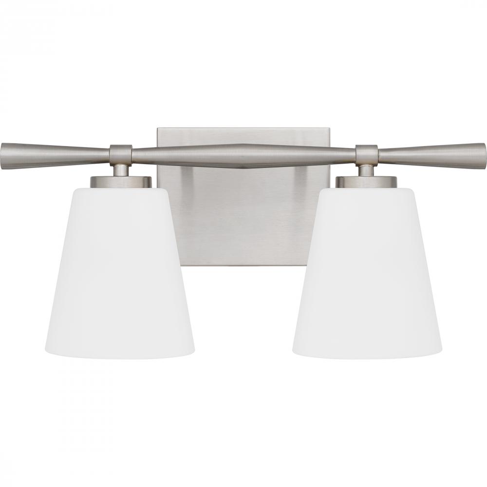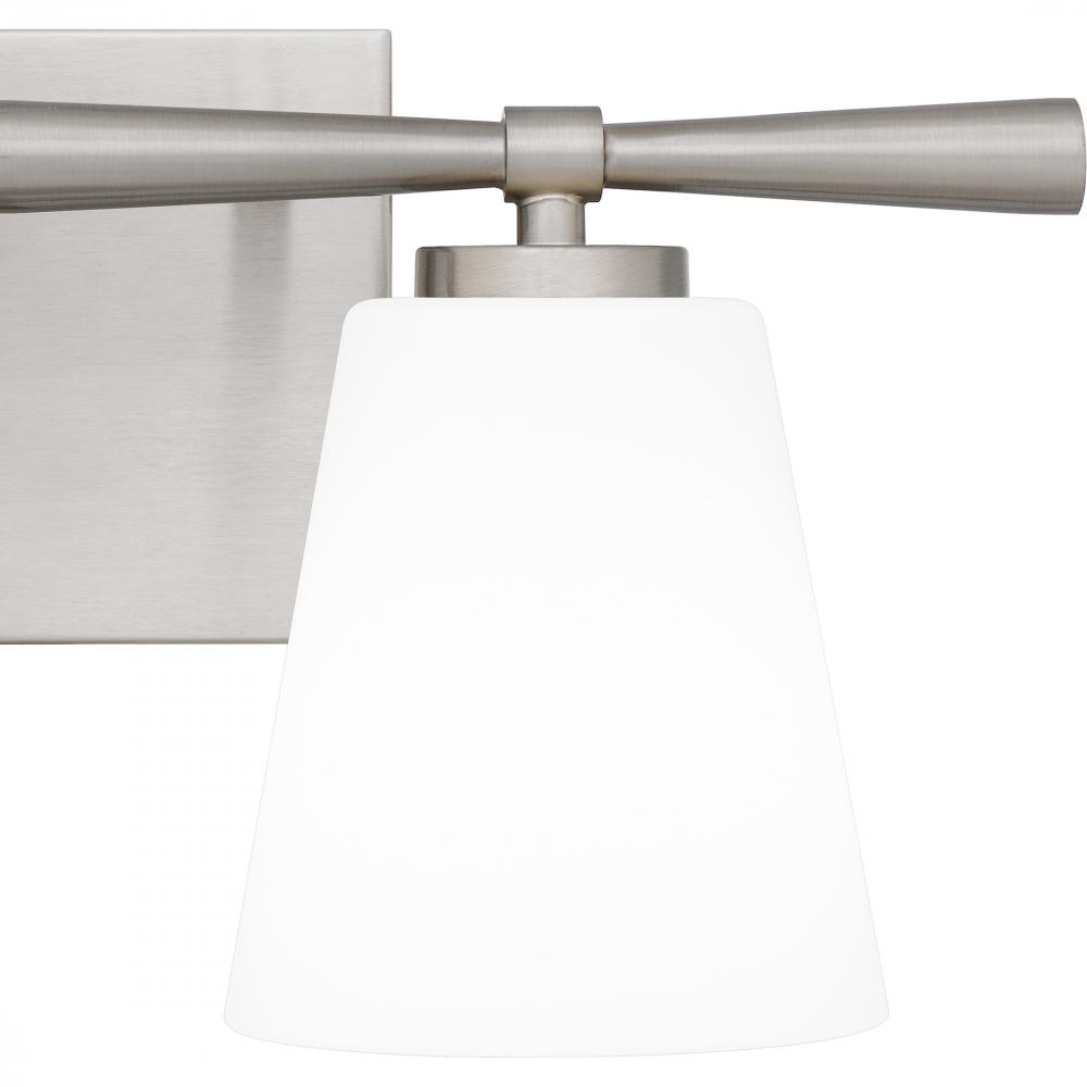 With geometric lines and a slim silhouette, Brindley bath lights draw inspiration from mid-century design. Opal etched glass shades soften the light, creating a warm spa-like glow. Brindley is available in multiple size options and your choice of brushed n