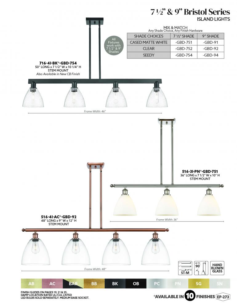 Bristol - 4 Light - 50 inch - Polished Nickel - Stem hung - Island Light