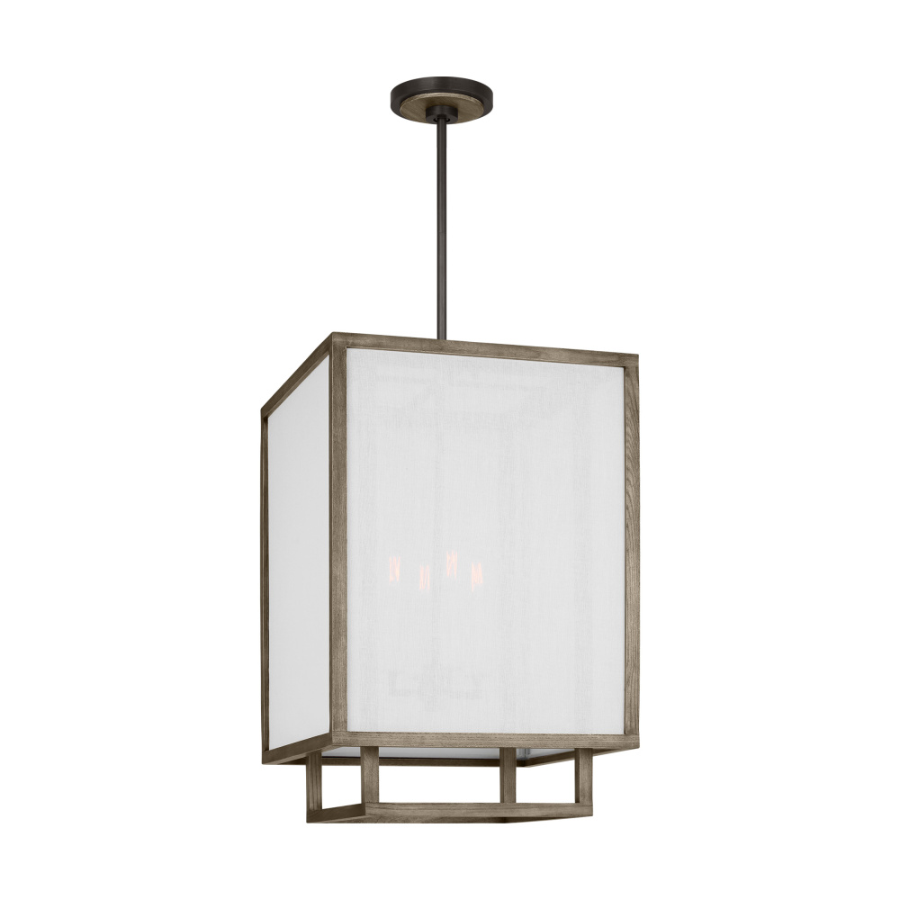 Layering is the signature staple of the Brockway series by Thom Felicia. The wood-frame-within-a-wood frame design is sheltered with linen panels allowing a hint of the architecture within to be experienced directly, while the remainder is seen diffused through the linen. The result is a light source of direct light downward and softened light through the side panel veils, creating a perfect illumination for any space.