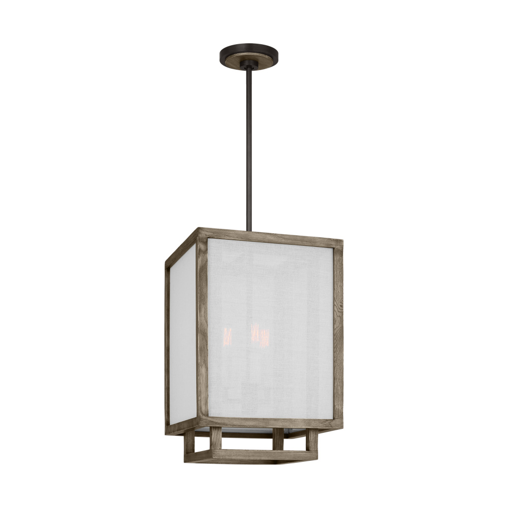 Layering is the signature staple of the Brockway series by Thom Felicia. The wood-frame-within-a-wood frame design is sheltered with linen panels allowing a hint of the architecture within to be experienced directly, while the remainder is seen diffused through the linen. The result is a light source of direct light downward and softened light through the side panel veils, creating a perfect illumination for any space.
