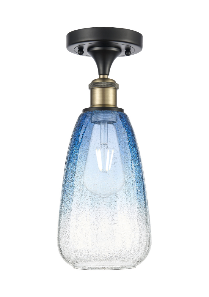 Brookhaven Almond - 1 Light - 6 inch - Black Antique Brass - Sapphire Blue Brookhaven Almond shade - Semi-Flush Mount