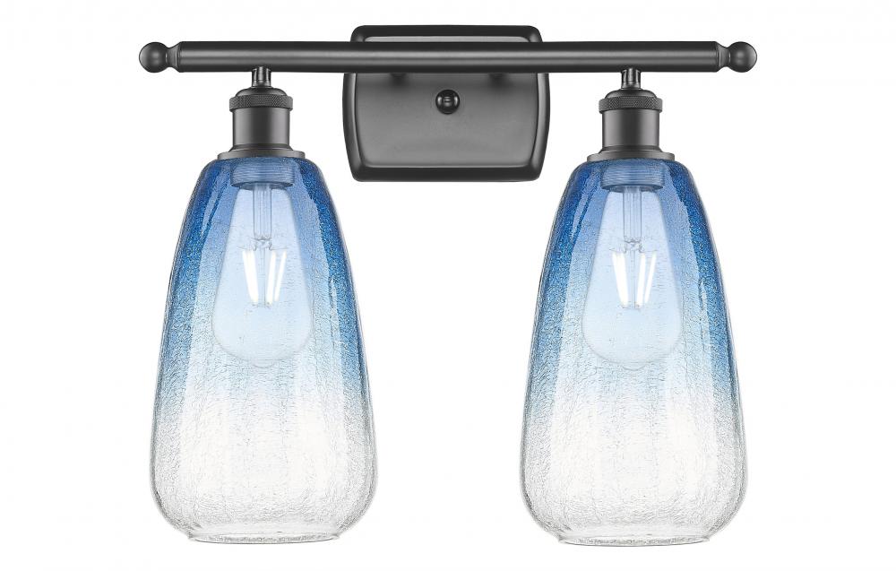 Brookhaven Almond - 2 Light - 16 inch - Oil Rubbed Bronze - Sapphire Blue Brookhaven Almond shade - Bath Vanity Light