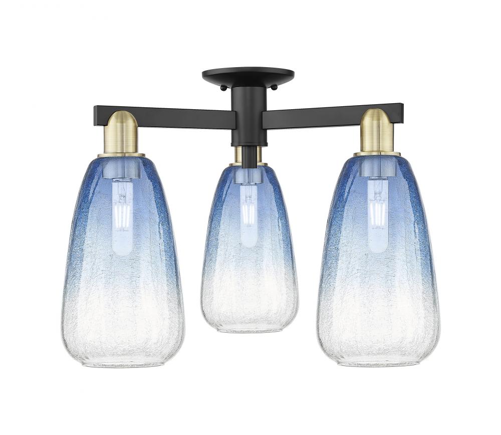 Brookhaven Almond - 3 Light - 6 inch - Black Antique Brass - Sapphire Blue Brookhaven Almond Shade - Semi-Flush Mount