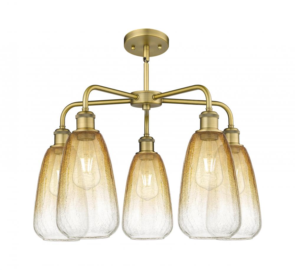 Brookhaven Almond - 5 Light - 25 inch - Brushed Brass - Amber Brookhaven Almond shade - Stem hung - Chandelier