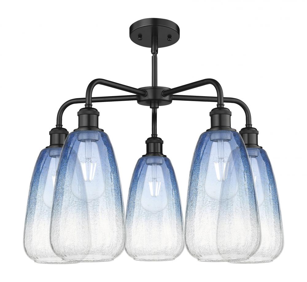 Brookhaven Almond - 5 Light - 25 inch - Matte Black - Sapphire Blue Brookhaven Almond shade - Stem hung - Chandelier