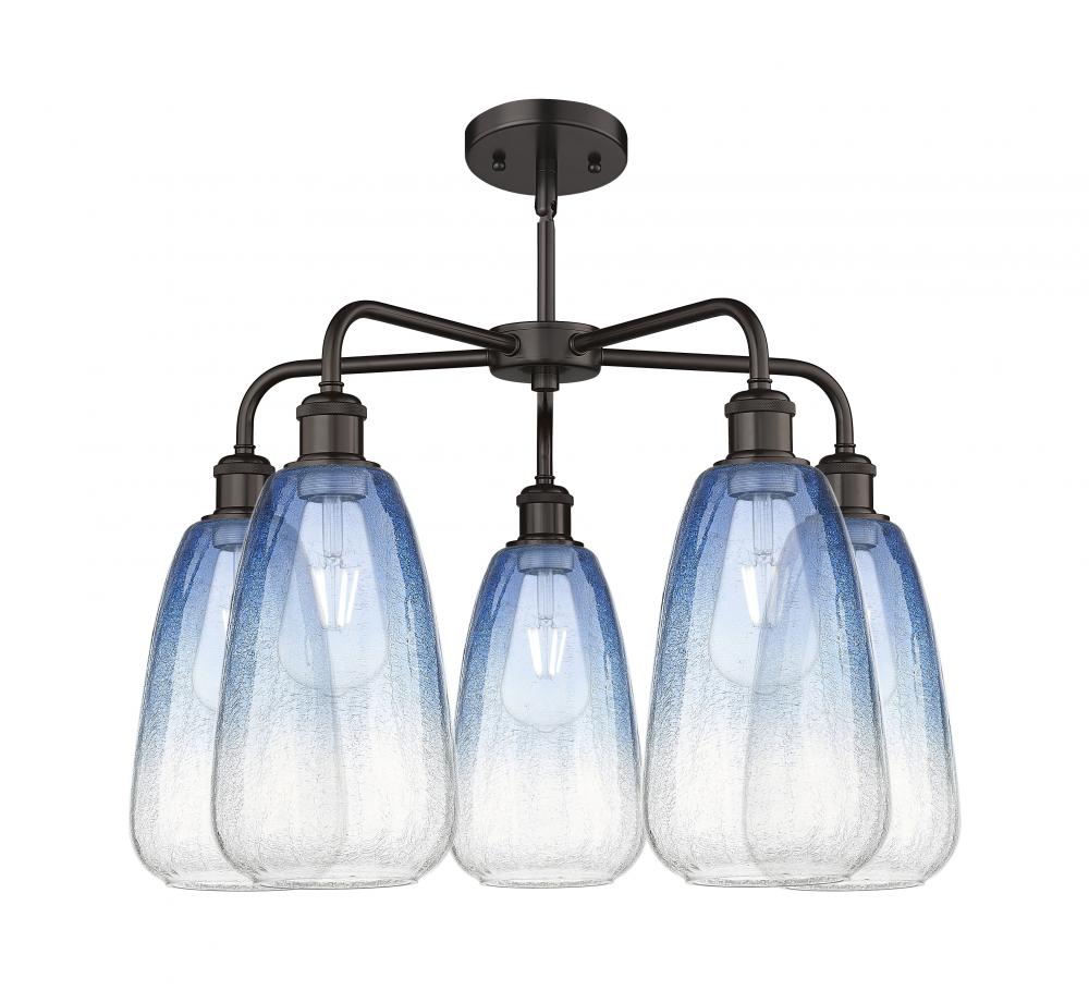 Brookhaven Almond - 5 Light - 25 inch - Oil Rubbed Bronze - Sapphire Blue Brookhaven Almond shade - Stem hung - Chandelier