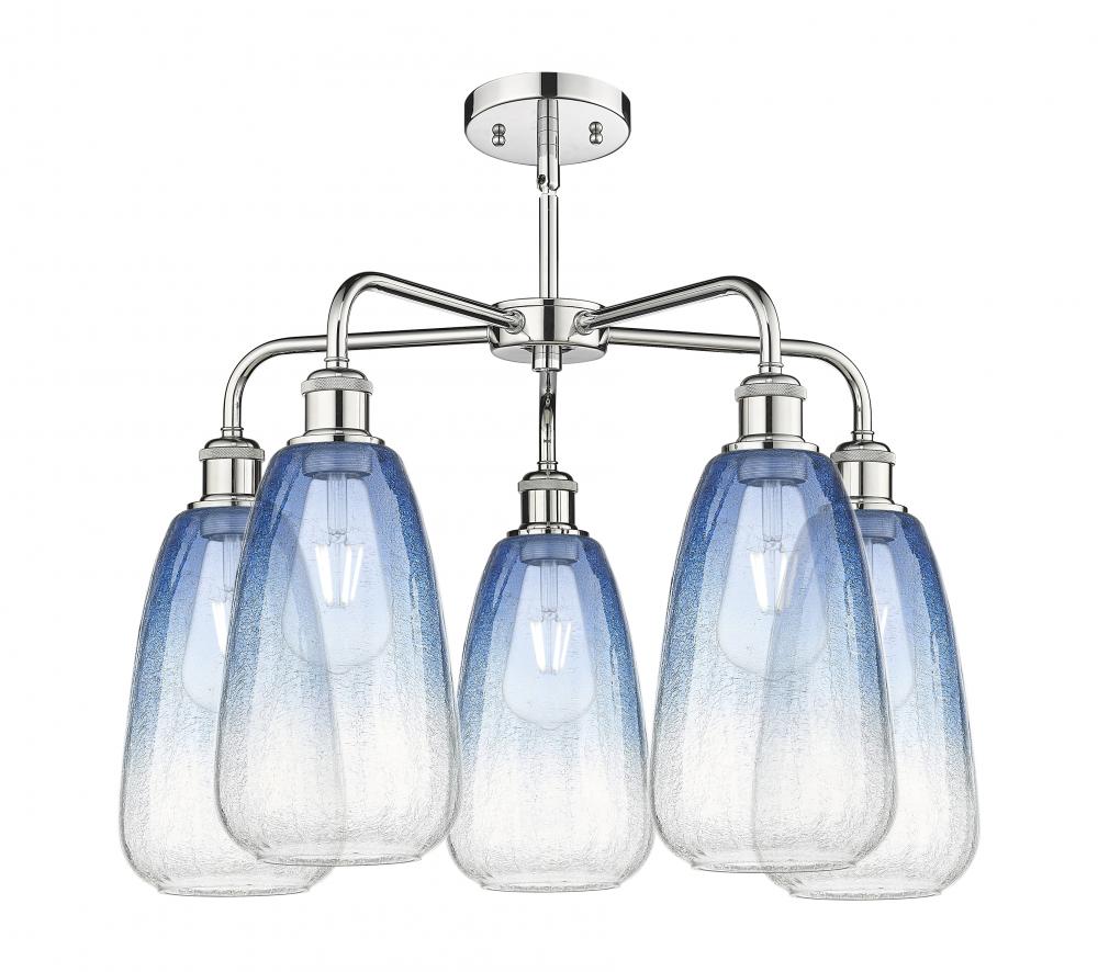 Brookhaven Almond - 5 Light - 25 inch - Polished Chrome - Sapphire Blue Brookhaven Almond shade - Stem hung - Chandelier