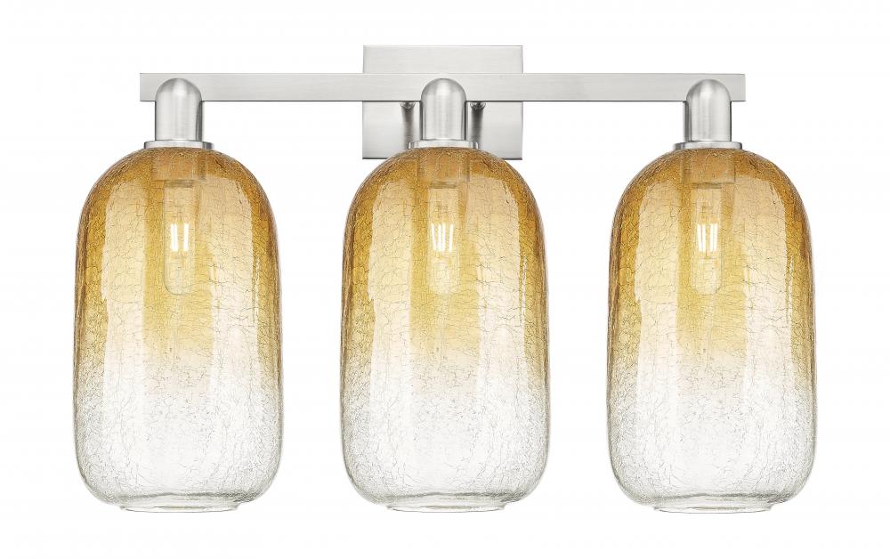 Brookhaven Cloche - 3 Light - 26 inch - Brushed Satin Nickel - Amber Brookhaven Cloche Shade - Bath Vanity Light