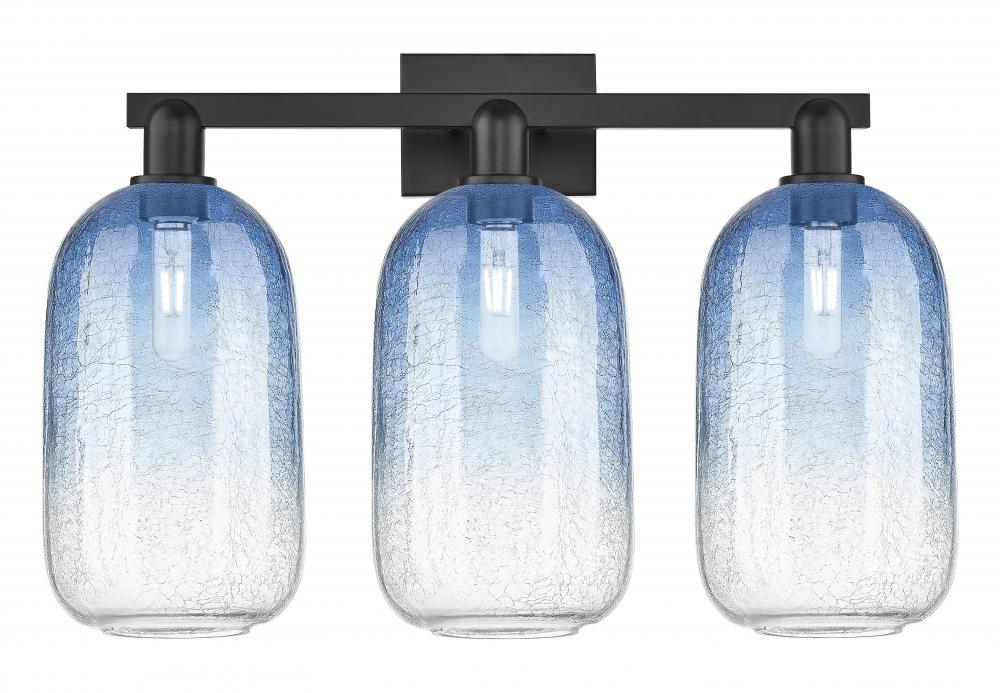 Brookhaven Cloche - 3 Light - 26 inch - Matte Black - Sapphire Blue Brookhaven Cloche Shade - Bath Vanity Light