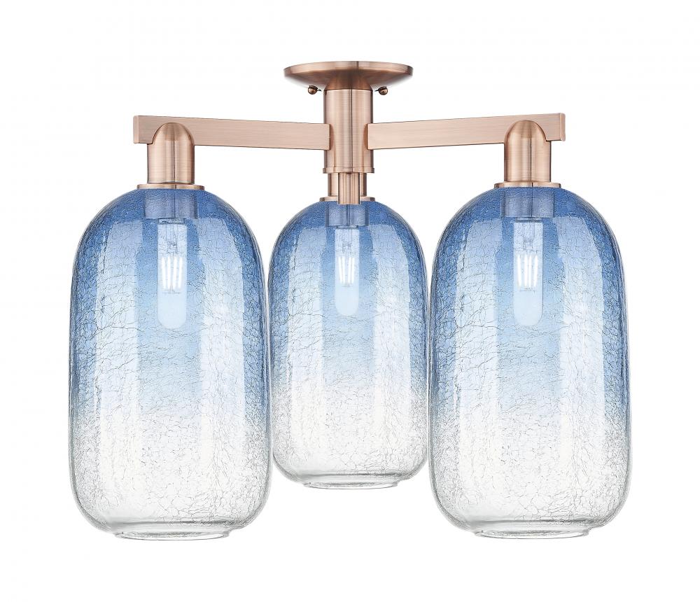 Brookhaven Cloche - 3 Light - 6 inch - Antique Copper - Sapphire Blue Brookhaven Cloche Shade - Semi-Flush Mount