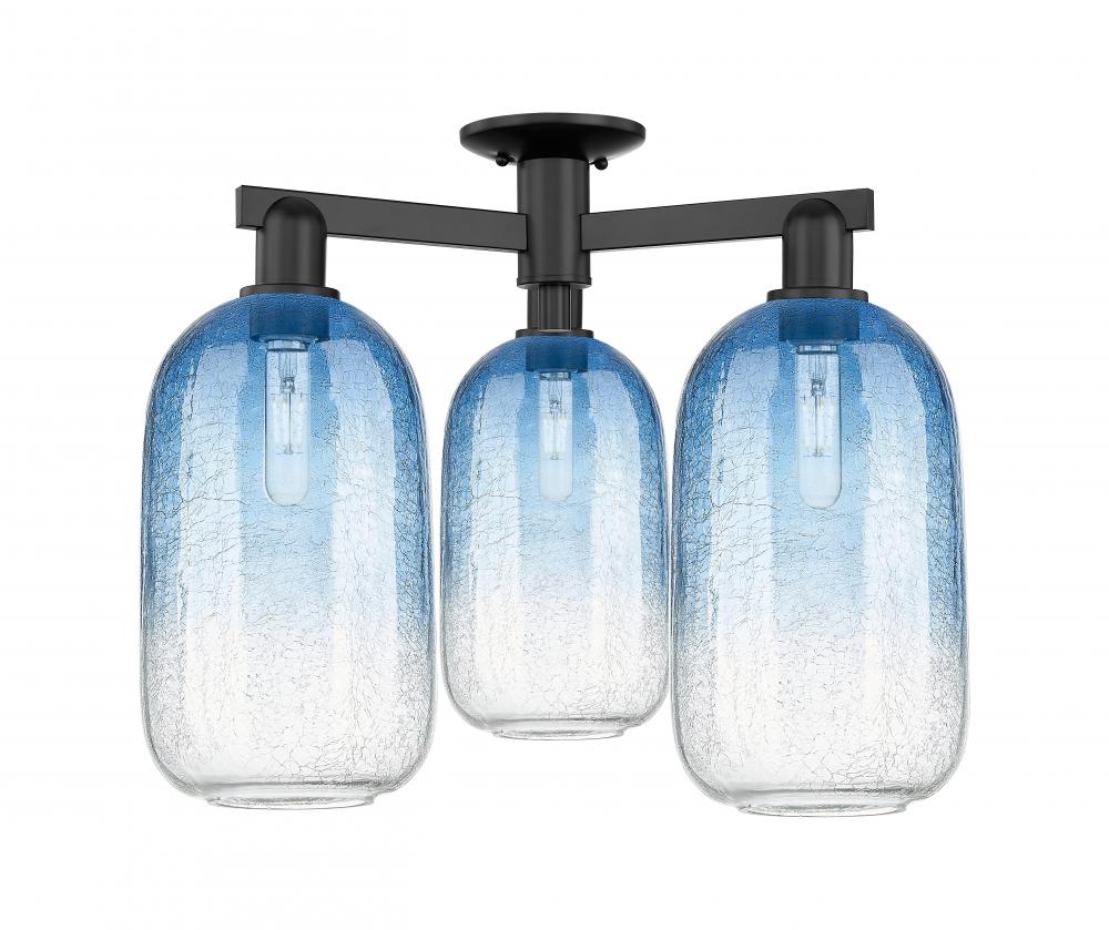 Brookhaven Cloche - 3 Light - 6 inch - Matte Black - Sapphire Blue Brookhaven Cloche Shade - Semi-Flush Mount