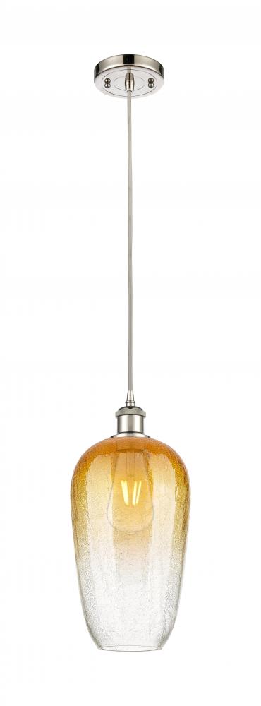 Brookhaven Flute - 1 Light - 7 inch - Polished Nickel - Amber Brookhaven Flute shade - Cord hung - Mini Pendant