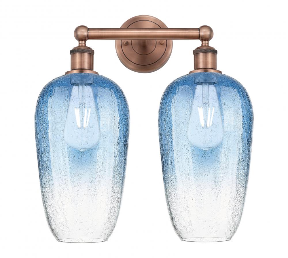 Brookhaven Flute - 2 Light - 16 inch - Antique Copper - Sapphire Blue Brookhaven Flute shade - Bath Vanity Light
