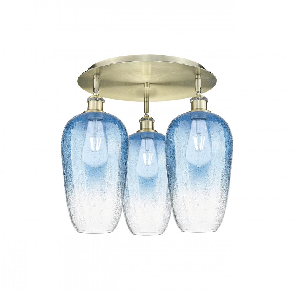 Brookhaven Flute - 3 Light - 19 inch - Antique Brass - Sapphire Blue Brookhaven Flute shade - Semi-Flush Mount