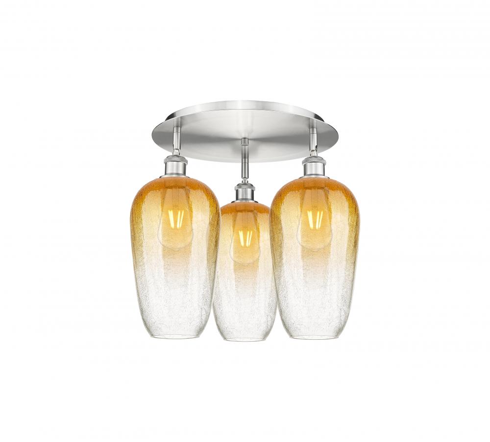 Brookhaven Flute - 3 Light - 19 inch - Satin Nickel - Amber Brookhaven Flute shade - Semi-Flush Mount