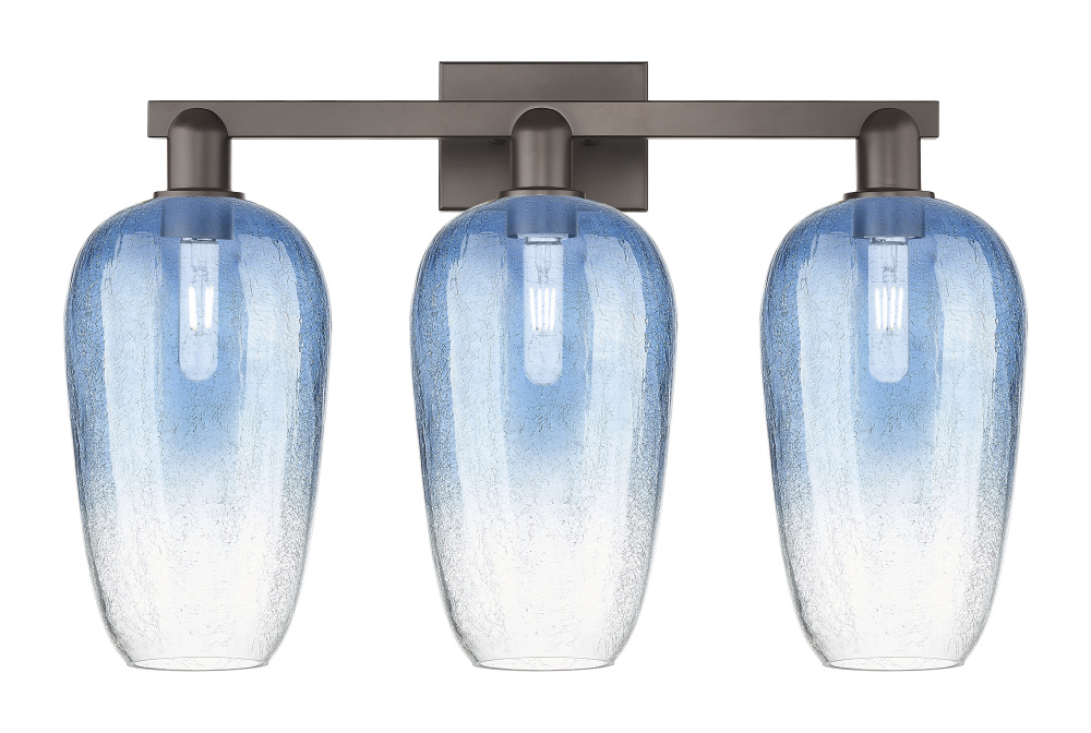 Brookhaven Flute - 3 Light - 26 inch - Oil Rubbed Bronze - Sapphire Blue Brookhaven Flute Shade - Bath Vanity Light