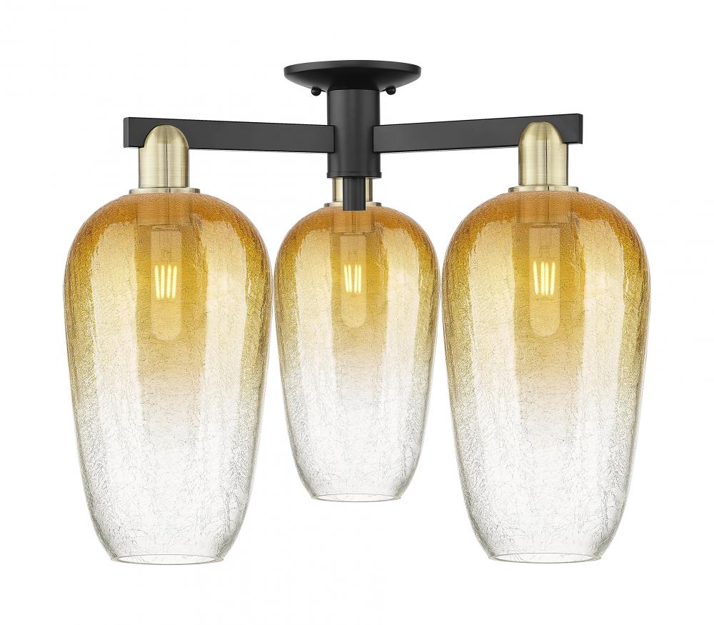 Brookhaven Flute - 3 Light - 6 inch - Black Antique Brass - Amber Brookhaven Flute Shade - Semi-Flush Mount