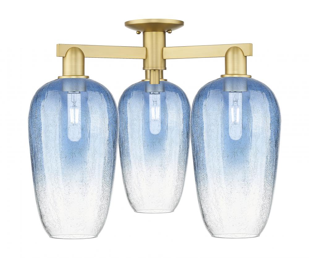 Brookhaven Flute - 3 Light - 6 inch - Satin Gold - Sapphire Blue Brookhaven Flute Shade - Semi-Flush Mount