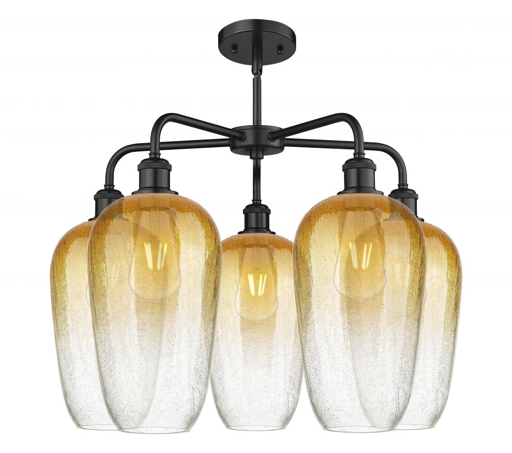 Brookhaven Flute - 5 Light - 26 inch - Matte Black - Amber Brookhaven Flute shade - Stem hung - Chandelier