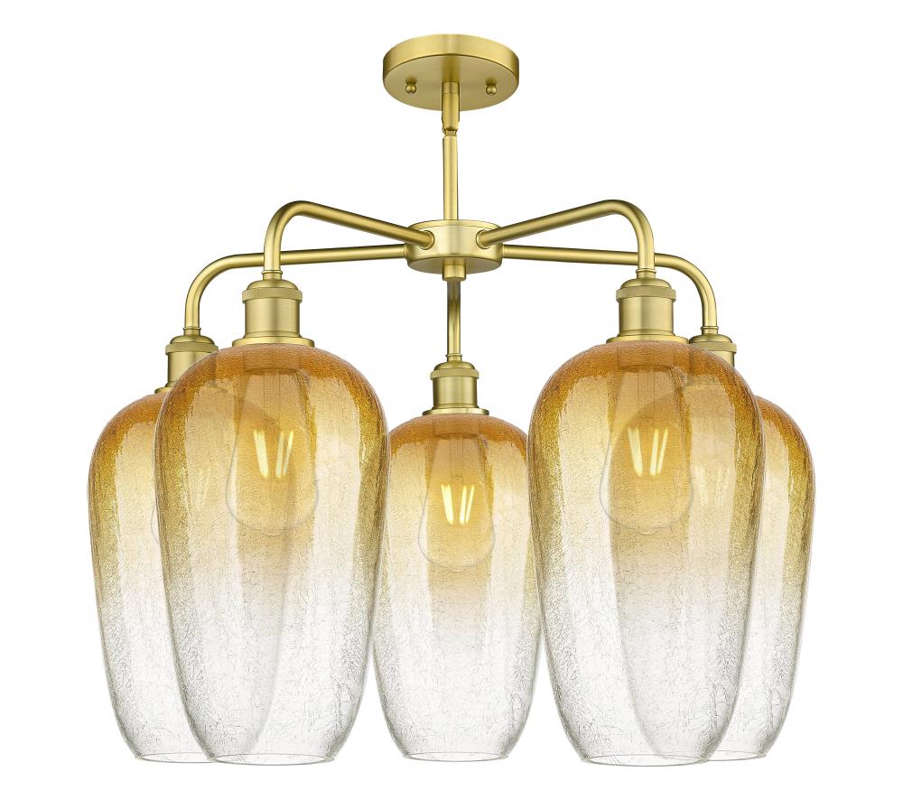 Brookhaven Flute - 5 Light - 26 inch - Satin Gold - Amber Brookhaven Flute shade - Stem hung - Chandelier