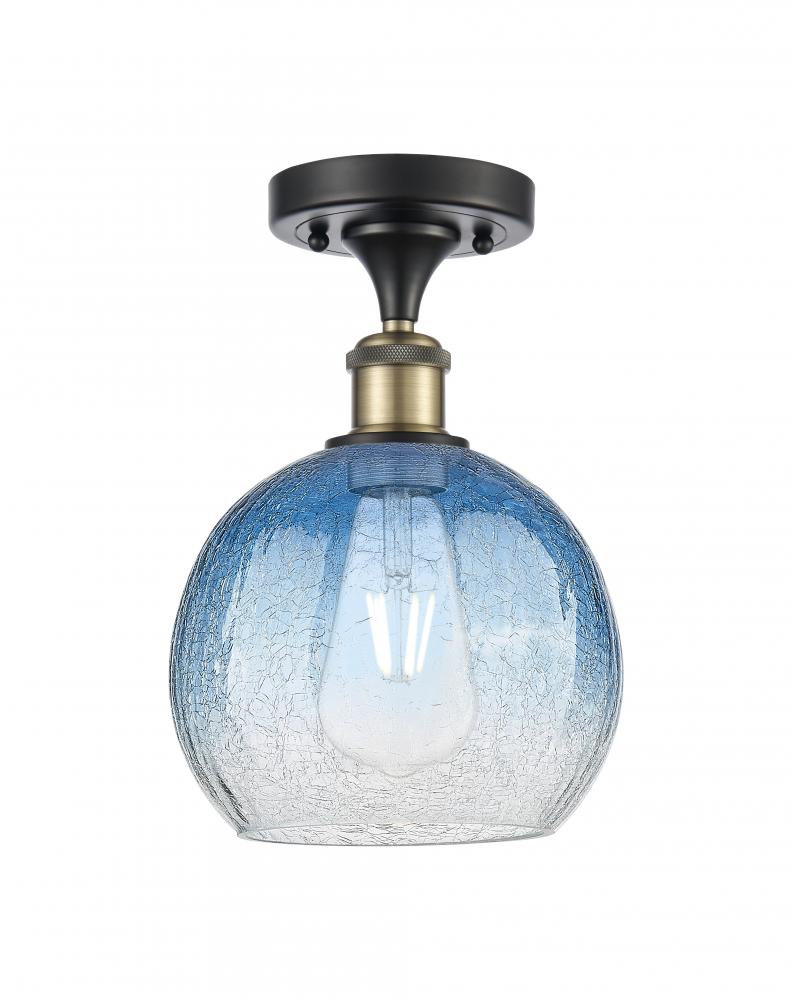Brookhaven Globe - 1 Light - 8 inch - Black Antique Brass - Sapphire Blue Brookhaven Globe shade - Semi-Flush Mount