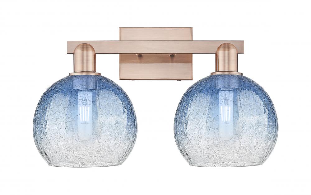 Brookhaven Globe - 2 Light - 16 inch - Antique Copper - Sapphire Blue Brookhaven Globe Shade - Bath Vanity Light
