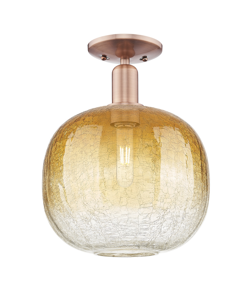 Brookhaven Sphere - 1 Light - 6 inch - Antique Copper - Amber Shade - Semi-Flush Mount