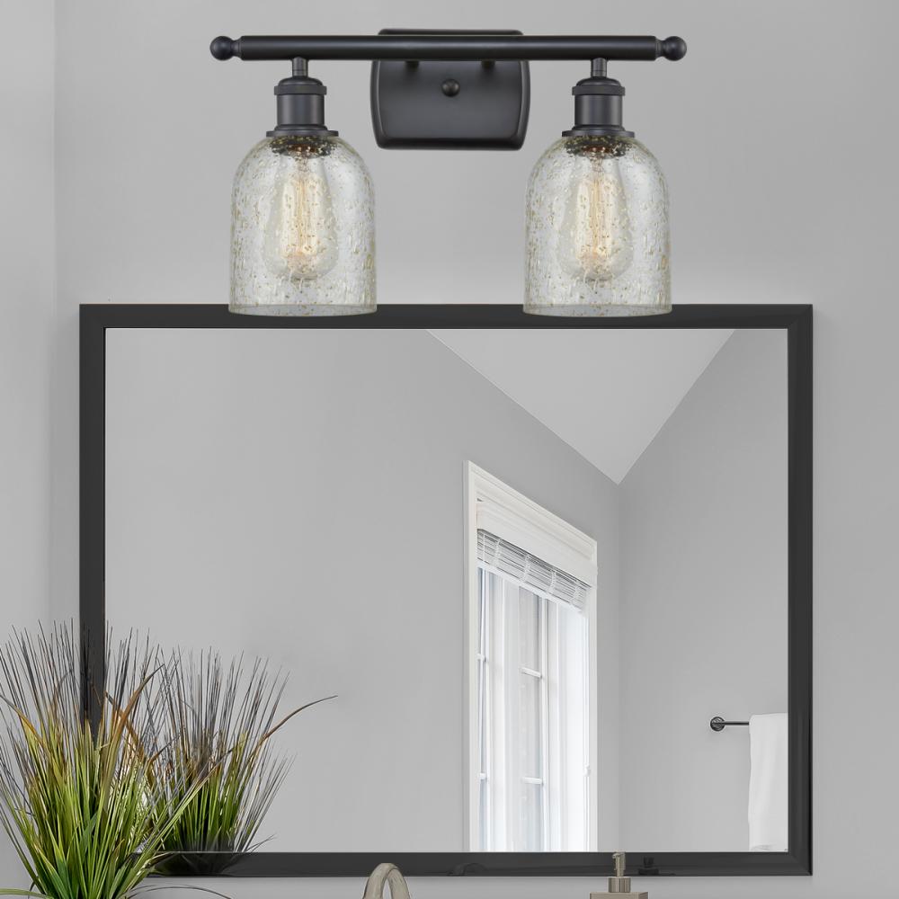 Caledonia - 2 Light - 15 inch - Matte Black - Mica Shade - Bath Vanity Light
