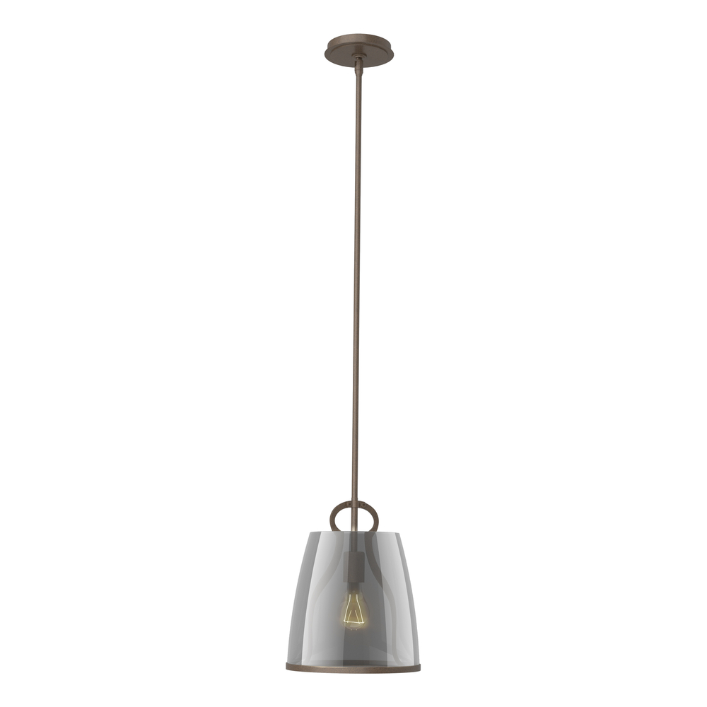 The perfect kitchen lantern, in addition to providing functional lighting, the Caliper Pendant is a conversation piece. Reminiscent of an antique tool within, the Caliper's large glass shade is supported by this tool and lower metal rim. Offered in two glass options, Clear or Plated Smoke for a more dramatic look. Available in all standard finishes.